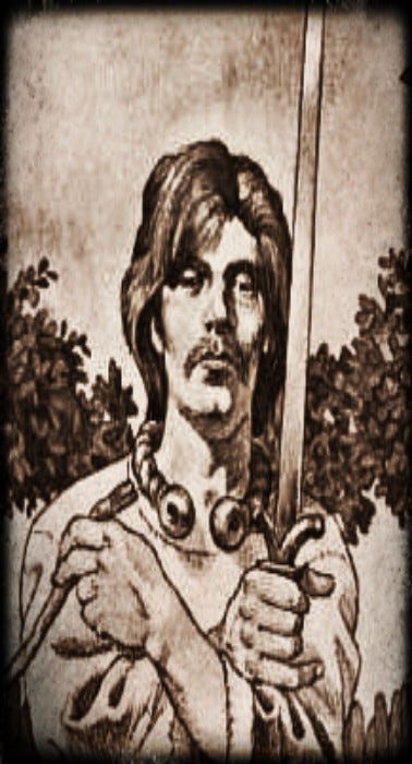 “by father’s glaive, the herbs of leech“